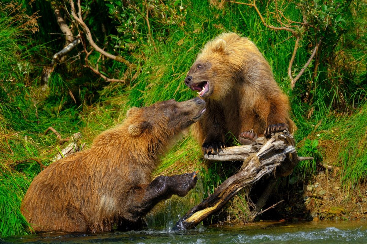 Capturing interaction between animals is always a wonderful thing and these two siblings were playing and fighting over this stump. The eyes and open mouth made this a favorite for me.