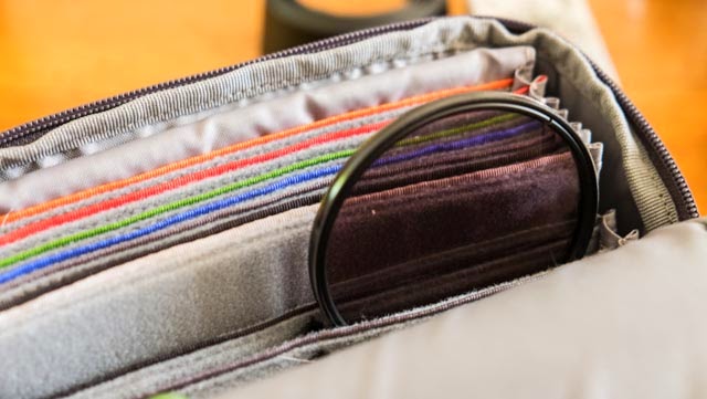 I don’t use a ton of different filters as I’ve been able to pare down what i use to the essentials to “get it right in camera” All of my filters store neatly in one pouch that fits easily in my backpack and can be hung on belt loop as I’m shooting for quick and easy access. The pouch I’m using right now, which i really like, is the Mindshift Filter Hive. It has padded sleeves for 8 rectangular filters and 6-9 slots for round filters, all in a handy zippered pouch.